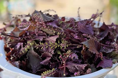 赤紫蘇を摘みに行って、洗ってお鍋で茹でてお砂糖を入れて出来上がり。