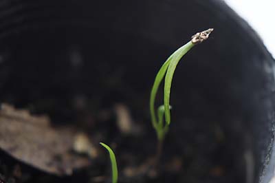 ほうれん草の種と、うちで発芽させた新芽ちゃん。
