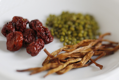 「脾」タイプの私が注目した2つの食材は、左側の「なつめ」と手前の「金針菜」。